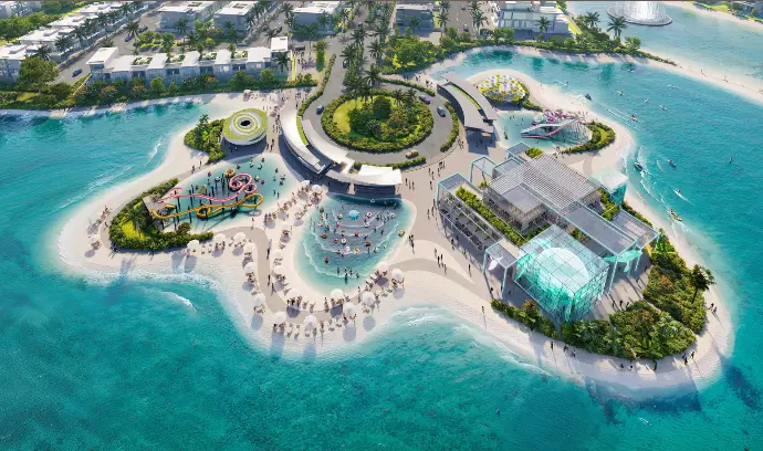 Located within Dubai’s DAMAC Lagoons master development, the new island phase offers luxury villas and townhouses designed to evoke the spirit of an exotic island retreat — complete with blue lagoons, white sand beaches, floating pavilions, lush tropical landscaping, and unique wellness and adventure zones.
